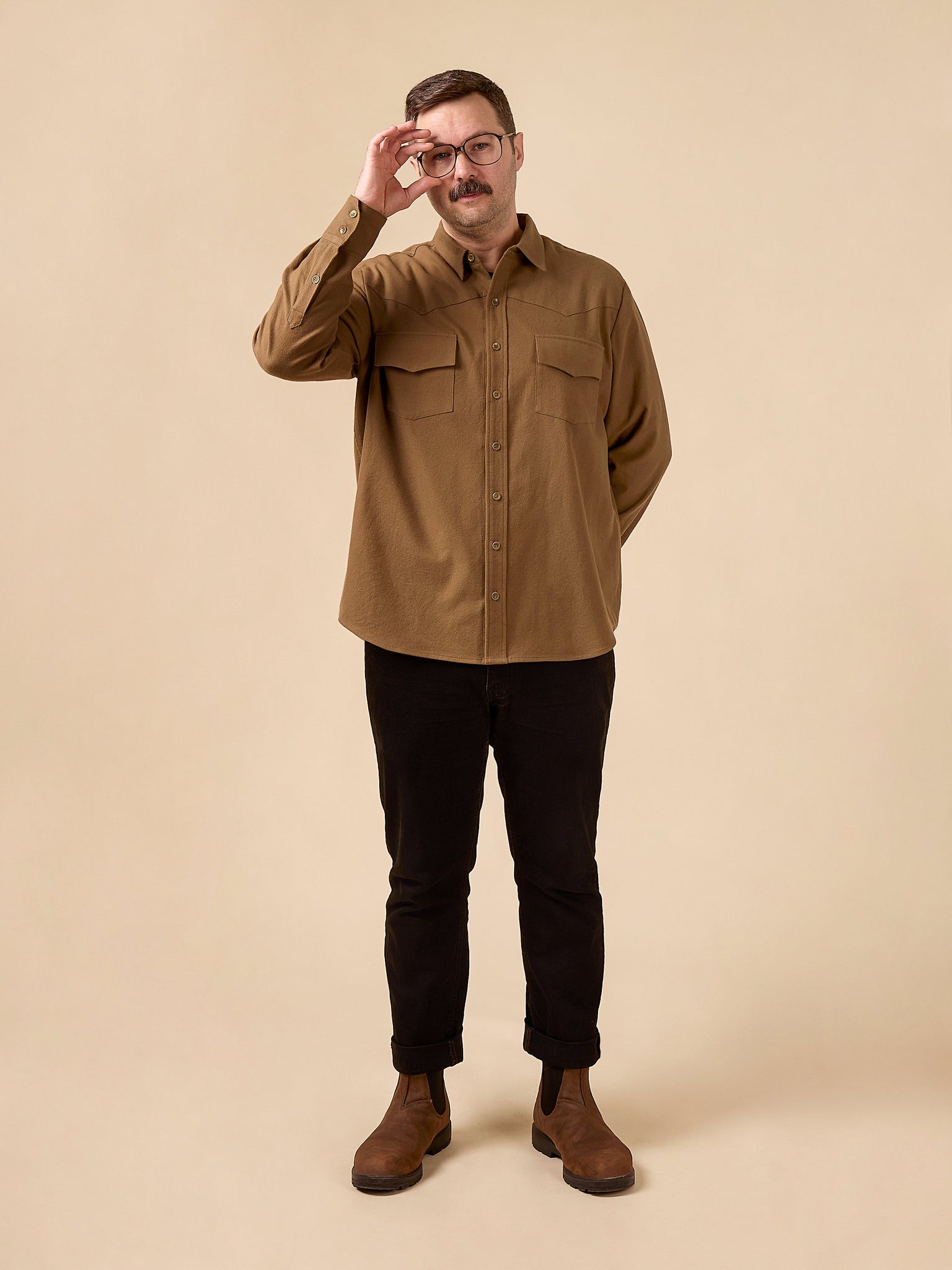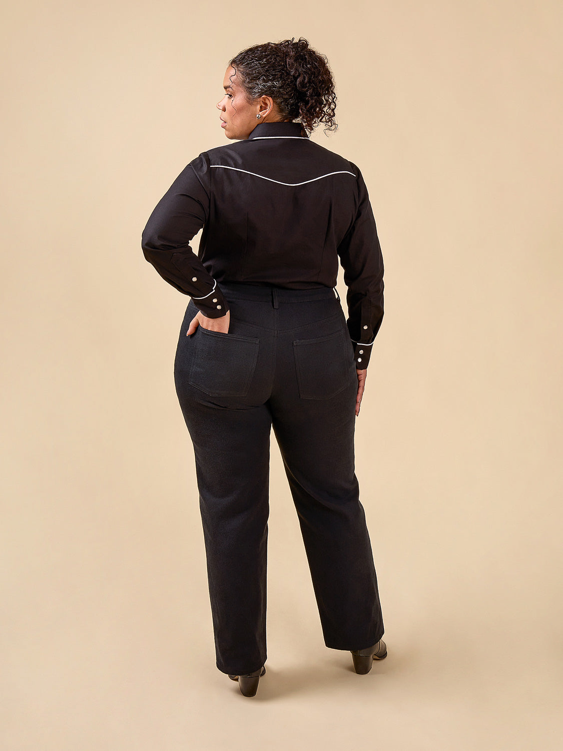 The Cornelius Western Shirt, created in collaboration with Cornelius Quiring, blends iconic Western details with thoughtful construction. Saddle up – this pattern is loaded with options, from sewn-on yokes to collars and pockets, so that you can customize to your heart's content. Cornelius is semi-fitted, but can be further tailored to the body with optional front darts and back fish-eye darts. A classic sleeve with a tower placket and cuff is shared with all versions, while additional features can be mixed and matched to create your perfect Western shirt. Keep it classic with simple fabrics, or go full rhinestone cowboy with piping, fringe, beading, and embroidery.